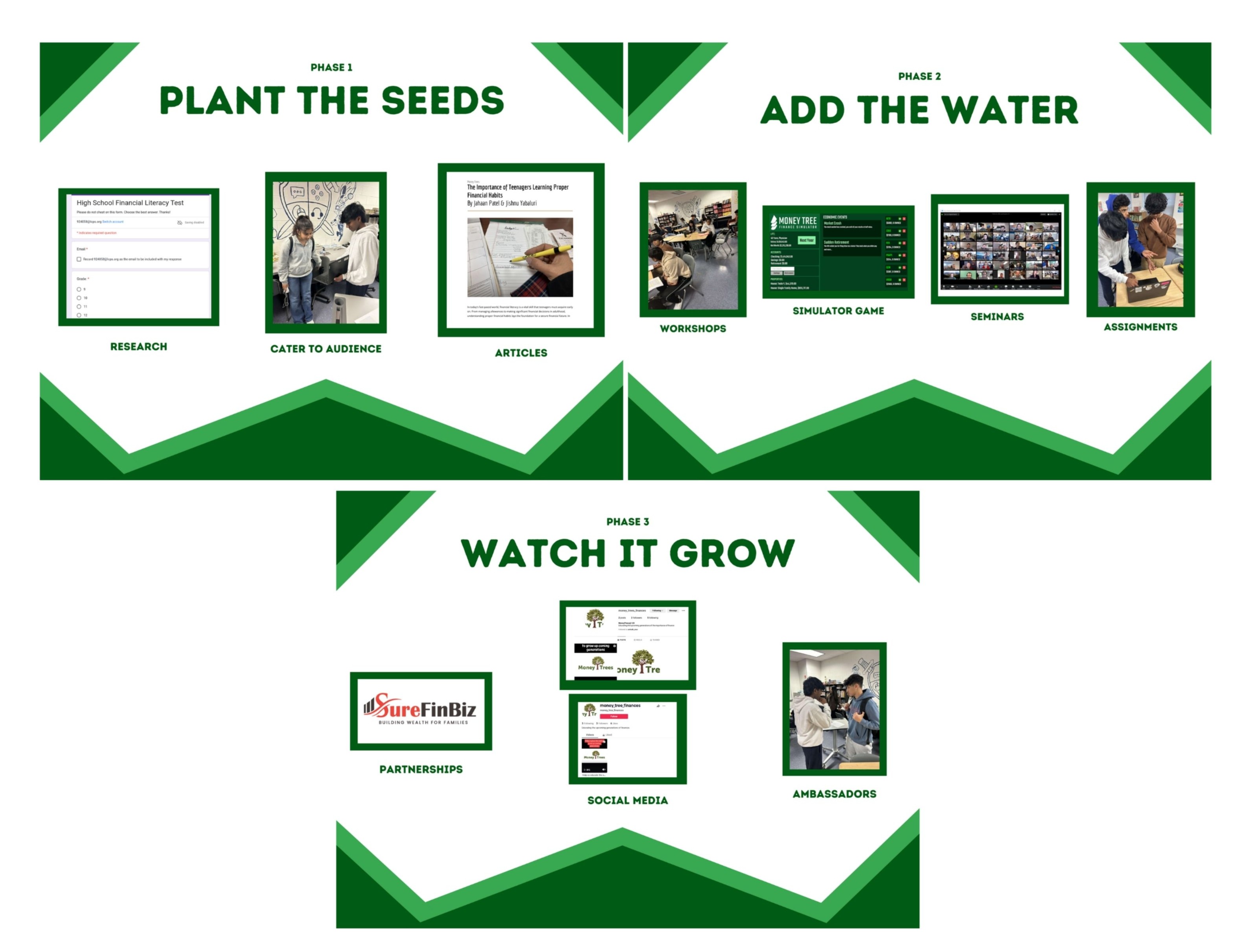 As part of a founding team, I helped launch Money Trees, a free community service initiative designed to teach teenagers essential financial literacy skills through an interactive, multi-phase curriculum. We began by surveying 131 students to understand their needs and preferences, then developed tailored educational content optimized for short attention spans. The program's centerpiece was a financial simulator game built in Unity that placed users in realistic scenarios with everyday financial obstacles, providing hands-on experience in a risk-free environment. We complemented the digital tool with both virtual and in-person workshops and seminars that encouraged collaborative learning. To maximize reach, we expanded through social media platforms including Instagram and TikTok, recruited brand ambassadors, and established strategic partnerships with other youth organizations.